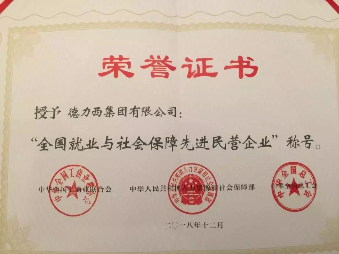 12月20日上午,由全国工商联、人力资源和社会保障部、全国总工会联合主办的全国就业与社会保障先进民营企业暨关爱员工实现双赢表彰大会在北京中国职工之家举行。会议表彰了一批先进集体和先进个人。德力西集团有限公司被评为“全国就业与社会保障先进民营企业”,集团高级副总裁胡成虎代表集团领奖。此次获奖的84家民营企业是从全国2700多万家民营企业中脱颖而出,浙江省共有5家企业入选,德力西集团是温州唯一一家获此殊荣的企业。 德力西自成立以来,坚持以人为本,持续改善员工待遇。公司建立健全薪酬福利等制度,广泛开展“双爱”活动,形成了全员齐心协力打造“幸福企业”的氛围。 公司实施工资集体协商制度,每年组织企业方、职工方代表集体协商工资,完善工资增长机制。同时一直致力于创建“学习型”企业,系统化培训员工,提升员工队伍的整体水平。培训体系包含生产员工的三级教育、行政员工的通用技巧、E-learning网络培训、外部公开课学习、各层级人员的专题专项培训、专业人才的专项技能、特殊工种考证等方面。此外还制定了完善的休假制度,依法保障员工的休息权。并结合公司女工居多的特点,建立了“准妈妈专线”、“妈咪暖心小屋”等,给予女工特别的关怀,受到了社会的好评。德力西爱婴哺乳室被评为“浙江省妈咪暖心小屋”。 公司建立了健全的党工团妇等群团组织,完善职代会、劳动争议调解委员会、厂务公开领导小组等内部组织和运作体制;先后制定了《劳动合同制度》、《工资协商制度》等,劳动合同签订率达100%,进一步夯实了和谐发展的基础。 公司深化民主管理,每年召开职代会,听取员工的意见和建议,仅采纳合理化建议,每年就创造价值达数百万元。工会还发挥职工“娘家人”的作用,通过宣传栏、网站、OA、邮件等,定期发布企务信息,及时让员工知厂情、参厂政、议厂事,真正发挥“主人翁”作用。 公司十分关心员工健康,定期组织体检,特殊岗位进行专门体检,有效预防职业病的发生;开通“施大姐热线”,倾听员工诉求,进行心理疏导;帮助解决员工子女“上学难”问题,设立“金秋助学基金”,资助家境贫寒的员工子女完成大学学业。